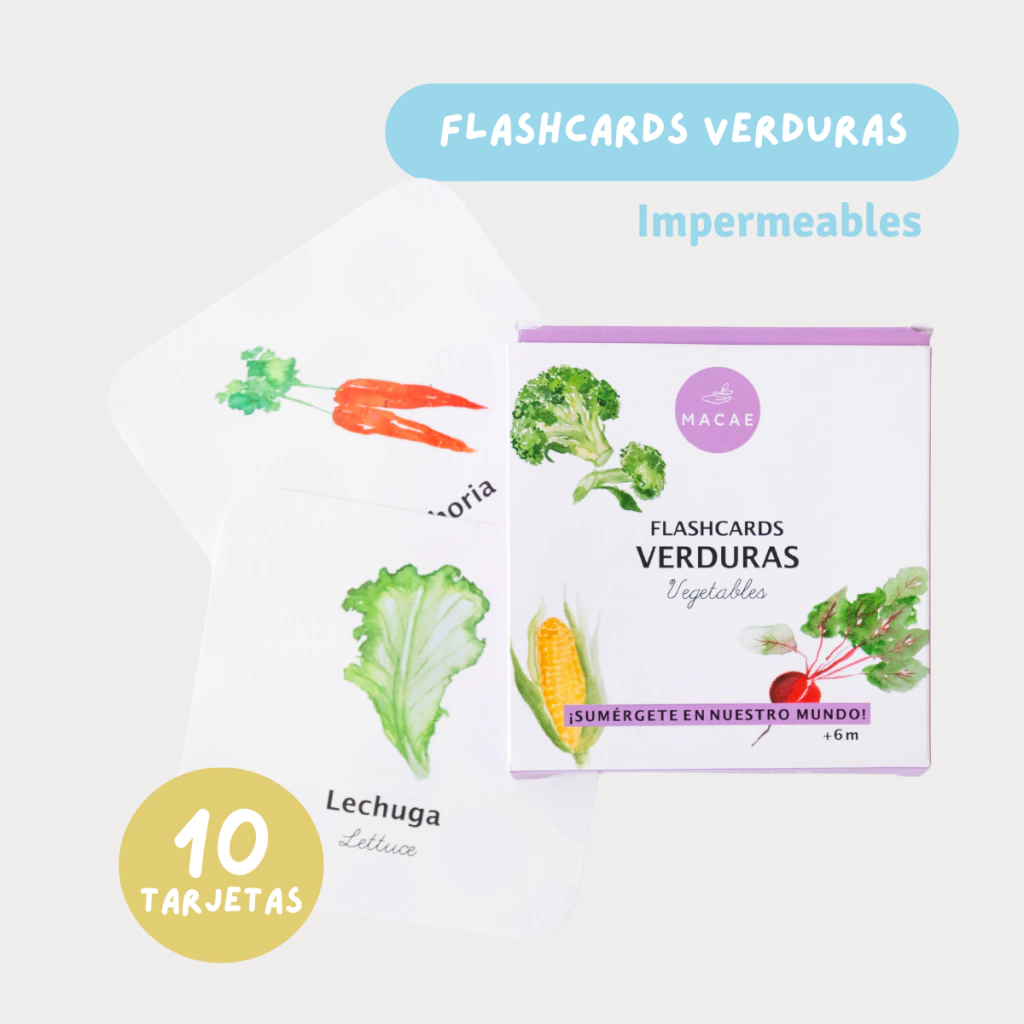 Características: Cada caja contiene 10 tarjetas de 9x9 cm repelentes al agua y la suciedad, con una ilustración en acuarela con su nombre en español (letra molde) e inglés (letra cursiva). Materiales no tóxicos. Vienen en caja de cartón de 10x10 cm.